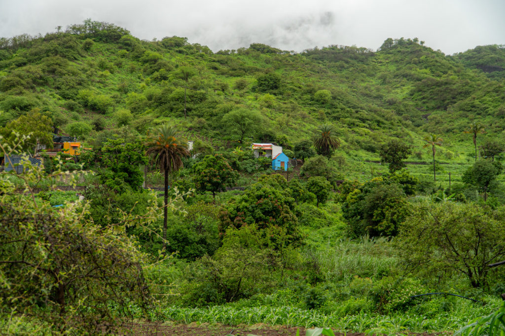 - Sur le chemin, on croise des Capverdiens cultivant le maïs en montagne, vendant de la viande sur le trottoir, et surtout, une végétation aux couleurs incroyables.