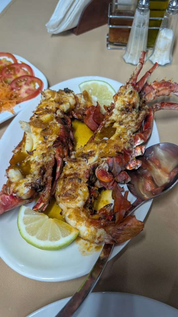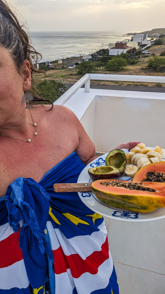 Prendre un jus de papaye frais, une Cachupa ou un Chorizo au petit déj chez Casa Café Mindelo . Diner face au port chez Le goût de Grills et se régaler avec une langouste grillée ! Et des fruits au marché ou aux vendeurs dans la rue. Tout est produit au cap vert sur les différentes îles; bananes, avocats, maracuja, papaye, citron vert, mangues (plus petites que celles que l’on trouve en France, mais avec plus de goût).
