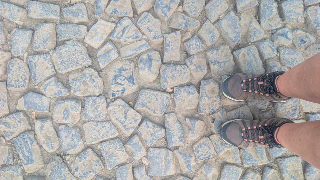 Les rues pavées ne sont pas lisses et régulières comme en Europe : pierres triangulaires, carrées, inégales, à des hauteurs différentes. Même avec mes chaussures de rando, ce n’était pas agréable.